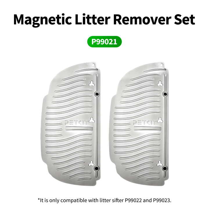 The magnetic cat litter remover set is designed to empty all cat litter in the automatic cat litter box. Two filter screens are compatible with most clumping cat litter. When the litter remover and the litter filter are used together, they can empty all litter from the cylinder of the petkit puramax self-cleaning litter box.