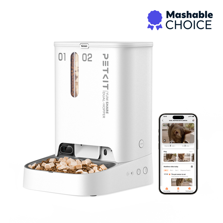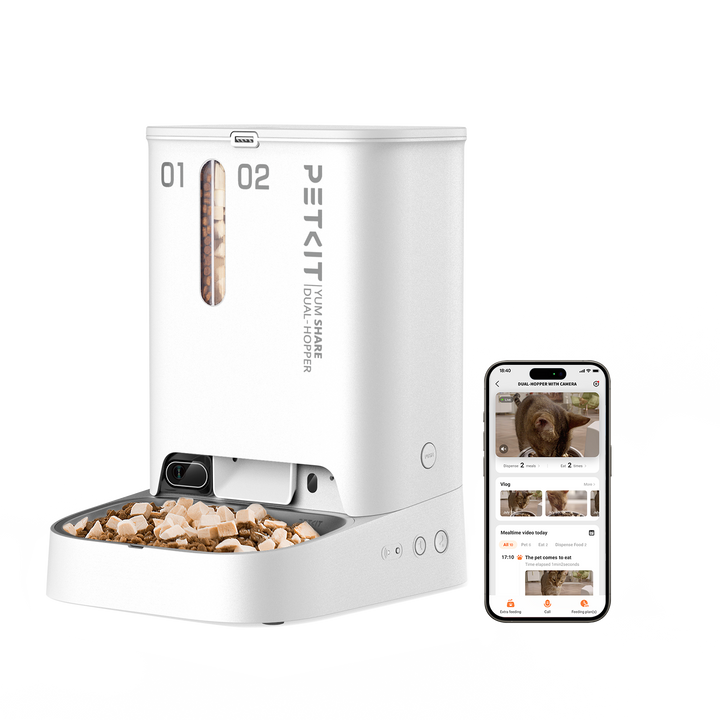 - Customizable Separate Dispense Double Hopper schedule up to 10 meals per day and up to 1/2 cup of food each time for each hopper via PETKIT App