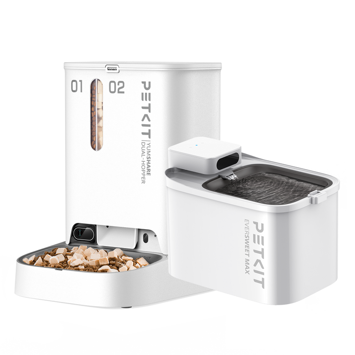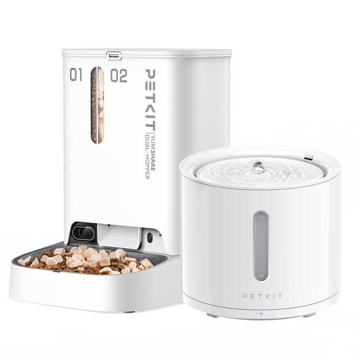 This bundle is the ultimate solution for busy pet parents, providing everything you need to meet your pet's feeding and drinking needs. With the PETKIT YumShare Dual-Hopper and Eversweet 3 Pro water fountain, you can ensure your pets always have access to fresh food and water, no matter where you are. The automated systems and smart technology make pet care easier than ever, giving you peace of mind and more quality time to spend with your furry companions.